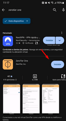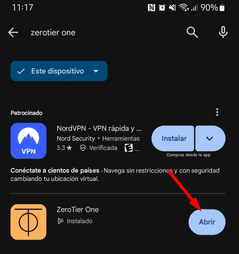 También, se debe instalar ZeroTier en el celular, en la play store colocamos