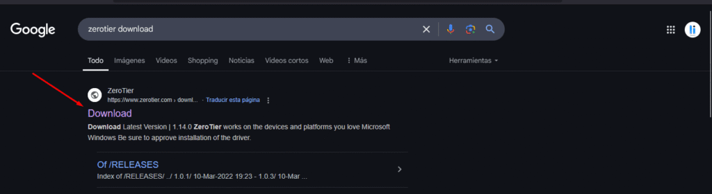 Ingresar a la página de ZeroTier