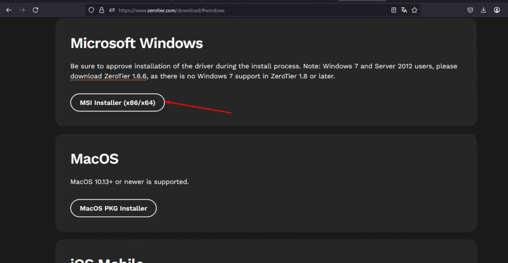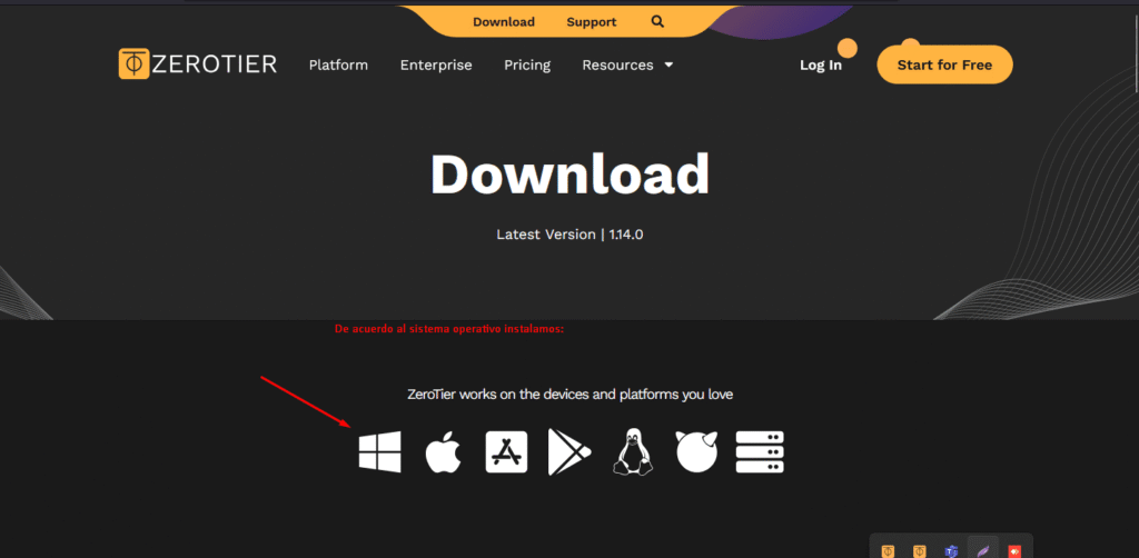 Es requisito también instalar ZeroTier en la PCs, de este modo: