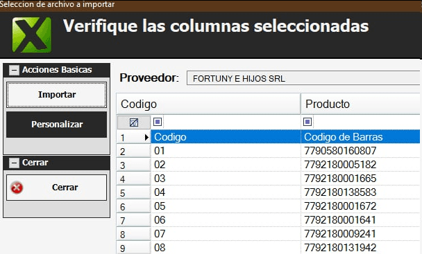 Abrimos el Importador, le damos a Iniciar Importación y selecciona un proveedor cualquiera.