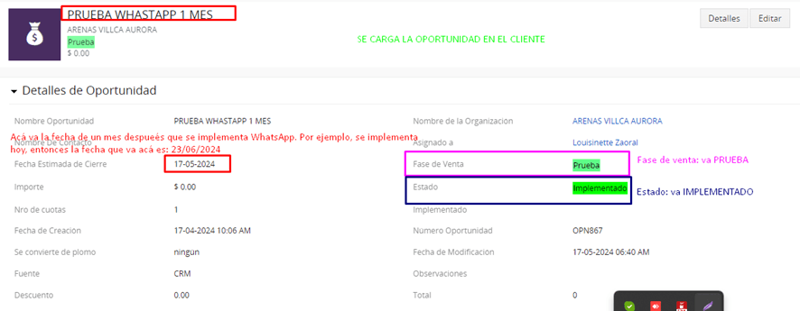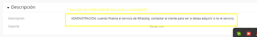 ADMINISTRACIÓN: cuando finalice el mes de prueba, consultar al cliente si desea o no adquirir el abono mensual de WhatsApp.