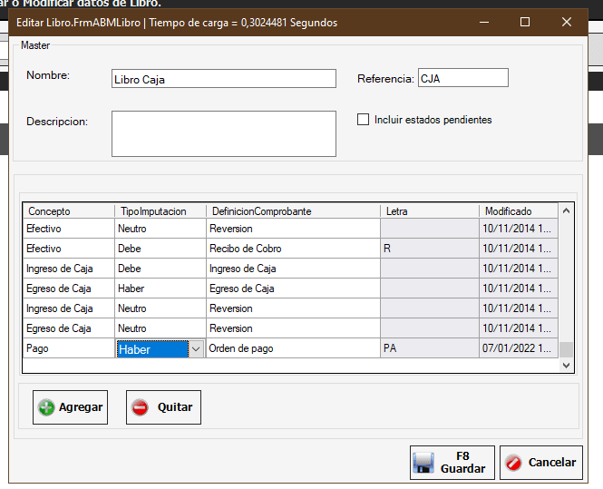 Configuración -> Libros, ahí buscamos Libro de Caja y le damos a Editar. Una vez dentro revisamos que no esté ya cargado; en caso que no, le damos a añadir ponemos en Concepto la caja/fondo en la que no aparece reflejado el movimiento, TipoImputación «Haber» y DefiniciónComprobante «Orden de pago». Por último le damos a Guardar y listo, ya se ven reflejados estos comprobantes.