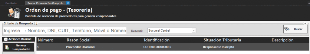 Luego, seleccionamos el proveedor y presionamos en GENERAR COMPROBANTE