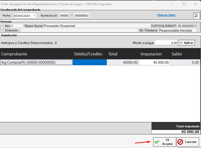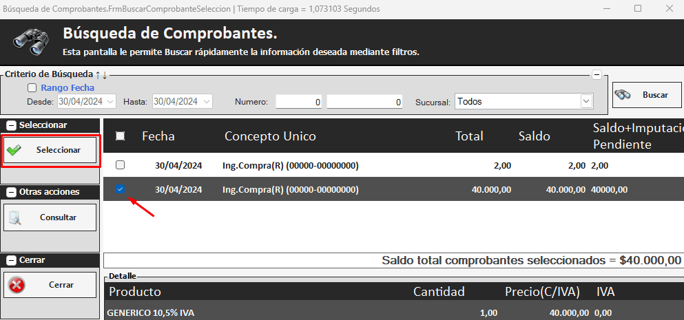 Luego, continuamos seleccionando el comprobante (presionando la tecla ENTER)