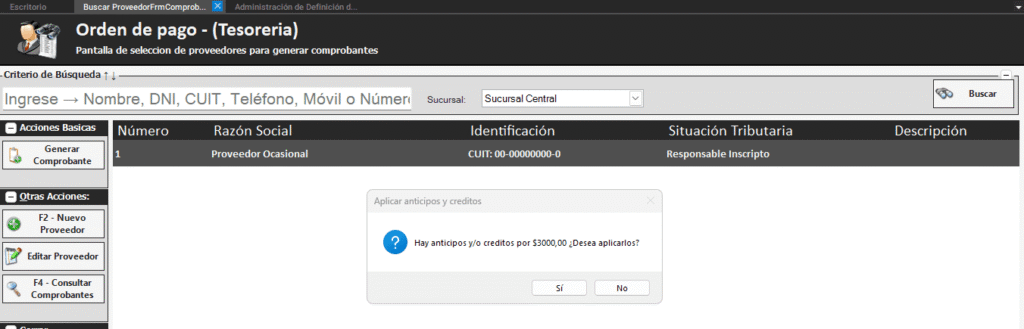 Entonces, al momento de generar una nueva orden de pago le va a figurar si desea o no aplicar esos ANTICIPOS.