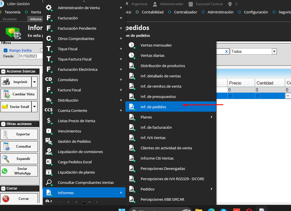 Para ver los productos/artículos que están pendientes de entregar, podemos verlo desde el siguiente informe: