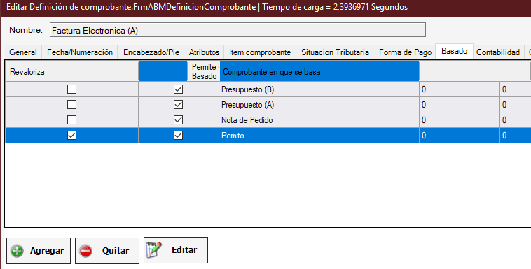 Vamos a la solapa Basado y seleccionamos el comprobante en el que nos vamos a basar, le damos a Editar