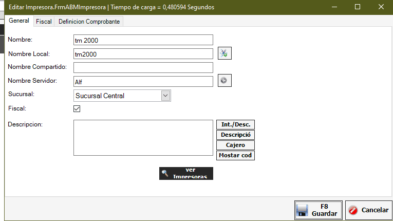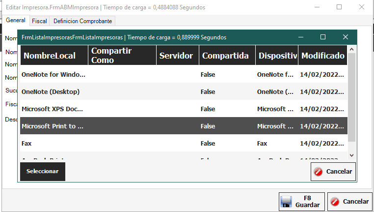 Seleccionamos una impresora, pulsamos Seleccionar y Guardar.