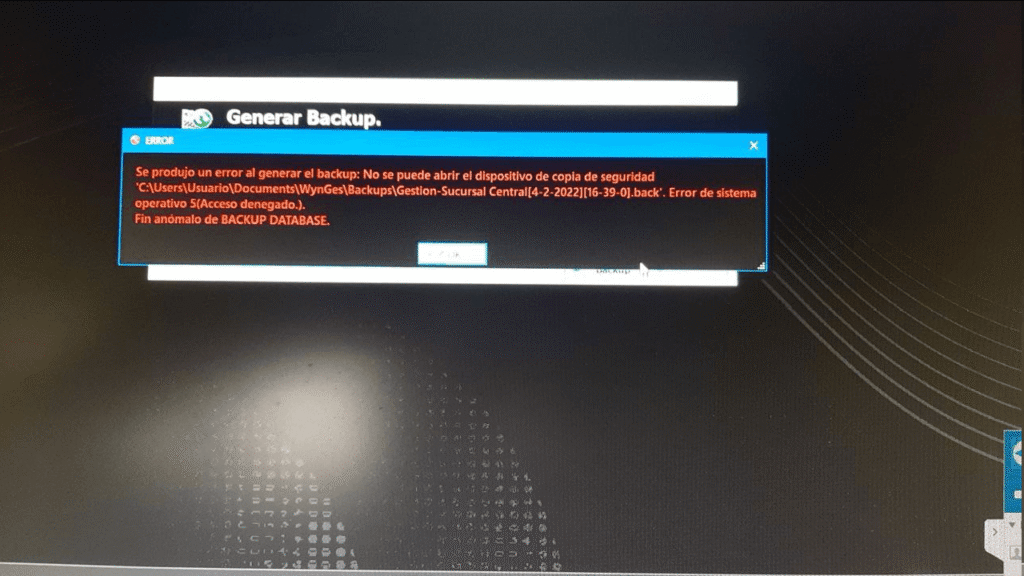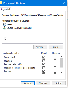Para esto hay que habilitarle los permisos a la carpeta de backups al grupo Todos