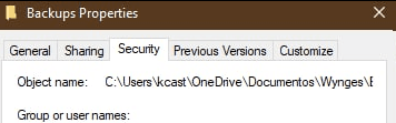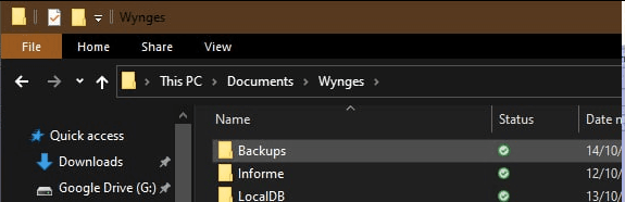 Deberá ir a Mis Documentos/Wynges y hacerla click derecho a la carpeta backups y darle a propiedades