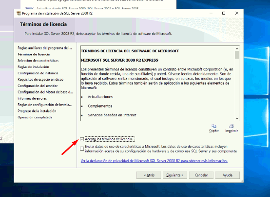Y en la siguiente pantalla seleccionamos los términos y presionamos en siguiente:
