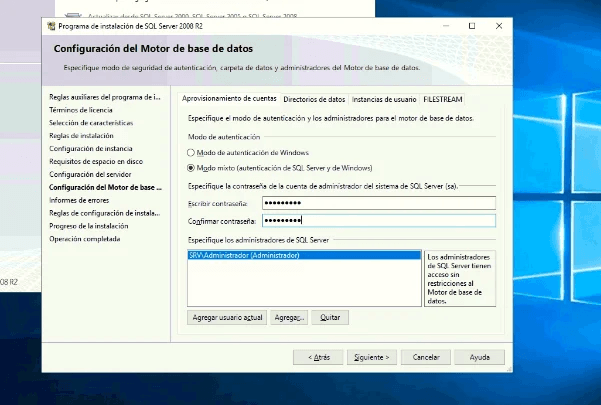 Por último, tildamos en MODO MIXTO y colocamos la contraseña: