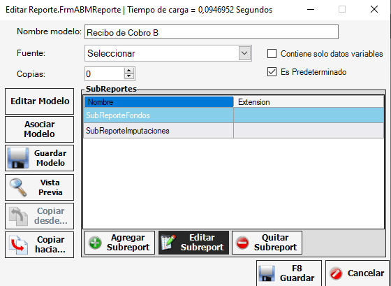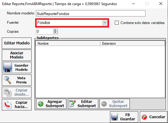 Debemos asegurarnos de que cada sub reporte tenga su fuente correspondiente como se muestra a continuacion: