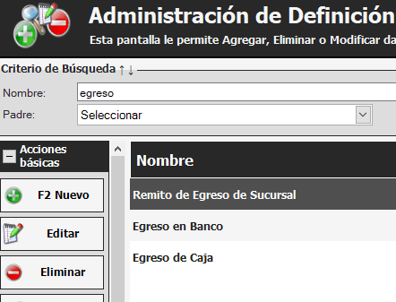 Buscamos y seleccionamos «Remito de Egreso de Sucursal» y le damos a Editar