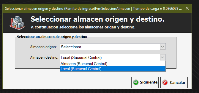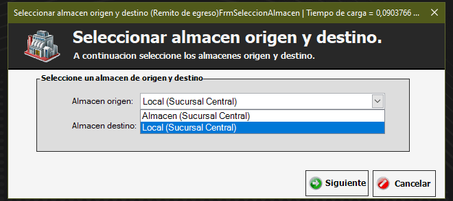 En el Remito de Egreso se mostrará como Almacén origen los que pertenezcan a la sucursal que estemos logueados