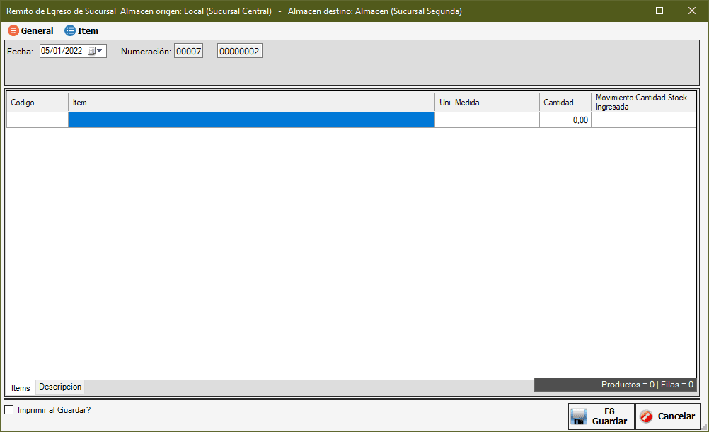 Para transferir entre sucursales se usan Remitos de Egreso y Remitos de Ingreso. Primero la sucursal que envía los productos debe emitir un Remito de Egreso y luego la sucursal que lo recibe, un remito de Ingreso. Esto es diferente que entre almacenes ya que este último requiere un solo movimiento. Claro, es por seguridad, que salga firmado y tener una constancia de ambas partes. Lo hacemos yendo a Centralizador -> Remito de Egreso.