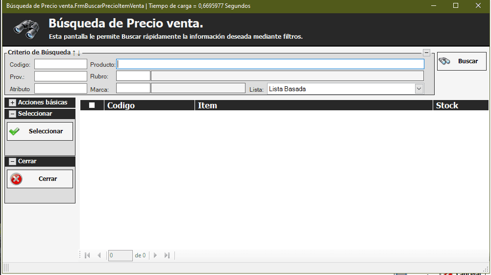 Nos posicionamos en el campo Ítem y presionamos Enter para que podamos buscar el producto