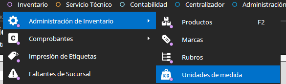 Inventario – Administración de inventario – Unidades de medida, presionamos en el botón NUEVO. Podemos crear las distintas unidades de medida como es este caso:
