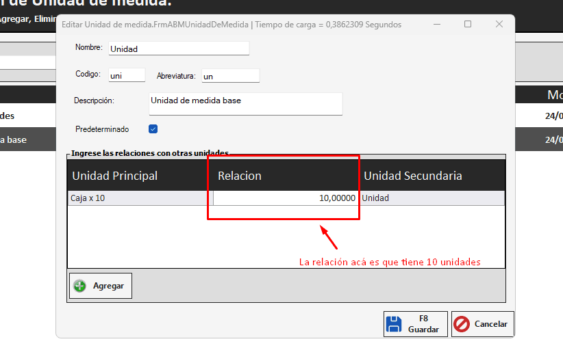 Por ejemplo, sí estamos comprando una caja de 25 tornillos que equivale a $50, la unidad de medida lo lleva a $2 por tornillo. Se divide el valor de la caja por los 50 que serían los tornillos.