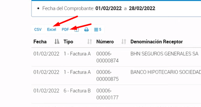 - Luego, a las facturas emitidas sí presionamos en el botón de EXCEL o PDF, las podemos exportar: