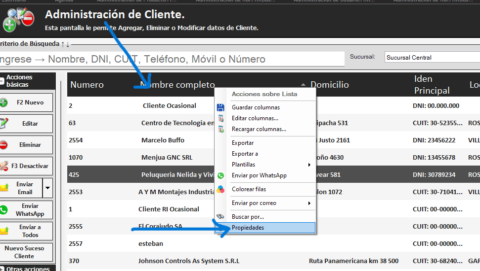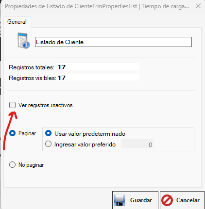 Clic derecho sobre esa fila – propiedades. En la pantalla que aparece a continuación, tildamos las solapa Ver Registros Inactivos