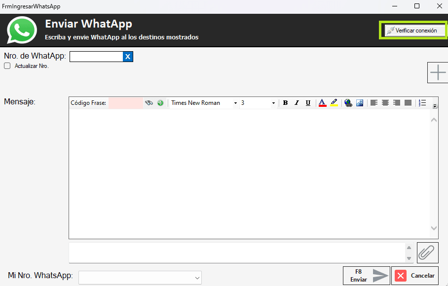 -Que vayan a cualquiera de las pestaña de ENVIAR WHATSAPP y que luego presionan el Botón que dice «VERIFICAR CONEXIÓN».